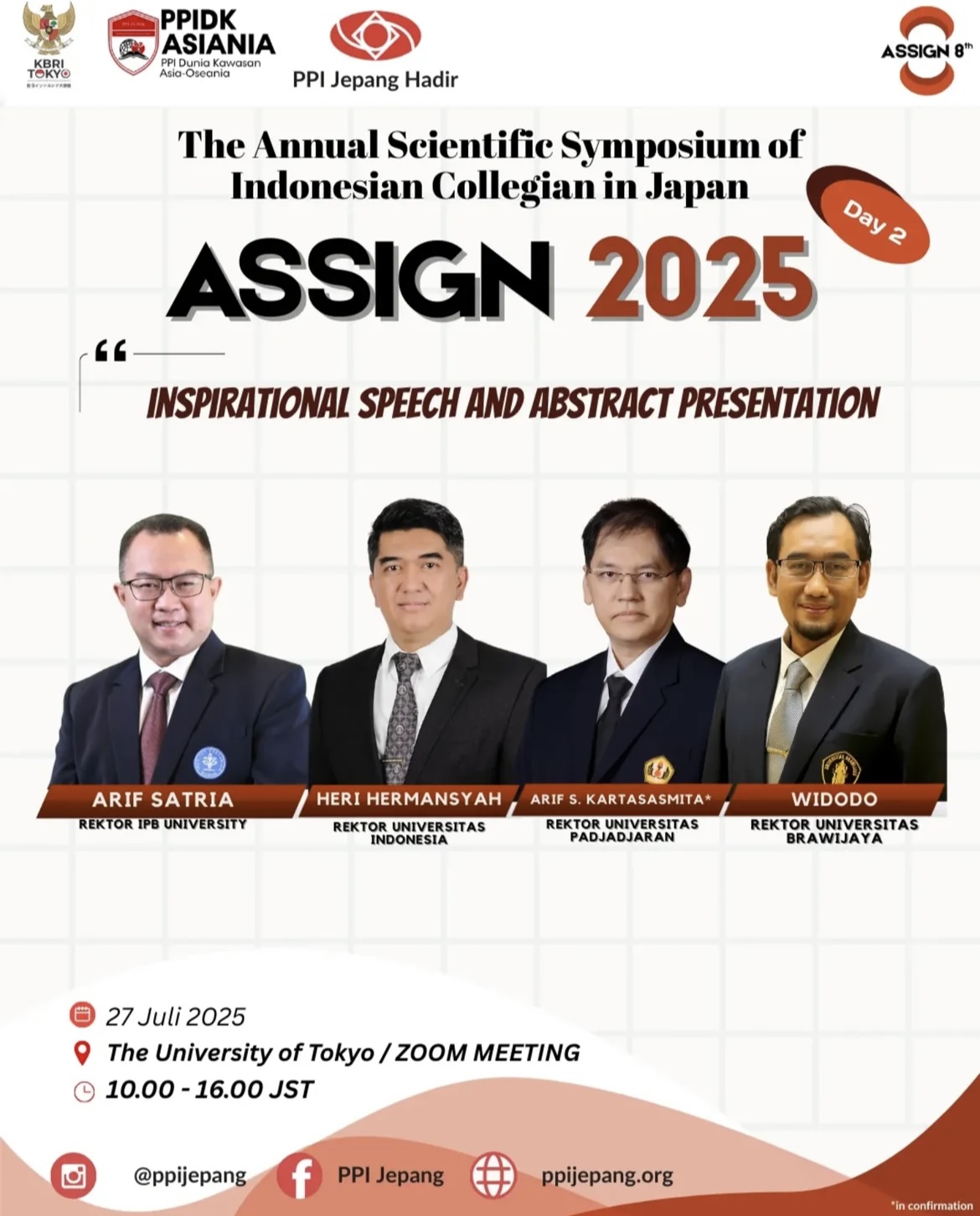 Hal ini ia sampaikan dalam kegiatan The 8th Annual Scientific Symposium of Indonesian Collegian in Japan (ASSIGN 2025) – PPI Jepang secara daring. Dalam kegiatan tersebut, Prof. Arif menyampaikan materi bertema “Kontribusi Riset dan Inovasi Pelajar Indonesia di Jepang Menuju Indonesia Emas 2045”