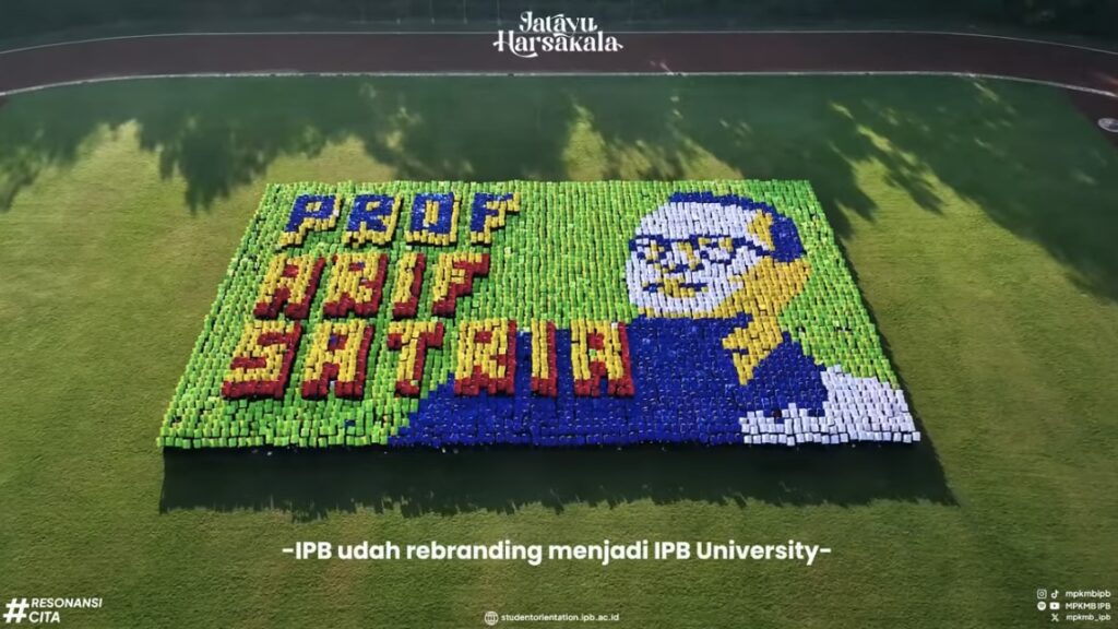 Mahasiswa baru IPB University Angkatan 62 berhasil memecahkan rekor Museum Rekor-Dunia Indonesia (MURI) untuk kategori konfigurasi ilustrasi komik 3D terbanyak menggunakan tas jinjing pada Jumat (15/8/2025). Rektor IPB University, Prof. Dr. Arif Satria, menyampaikan kebanggaannya atas capaian tersebut.