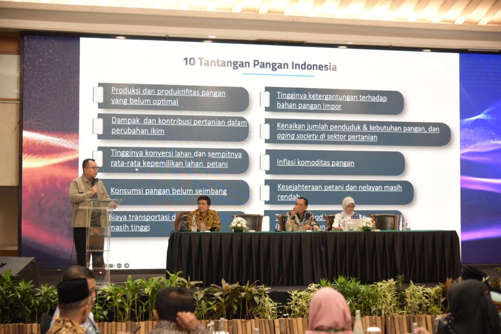Rektor IPB University Prof. Dr. Arif Satria memaparkan sepuluh tantangan besar yang dihadapi Indonesia dalam upaya mewujudkan ketahanan pangan nasional. Sehingga menurutnya kesepuluh tantangan ini harus dijawab dengan pendekatan sistemik dan kolaboratif antara negara, kampus, masyarakat, serta dunia usaha.