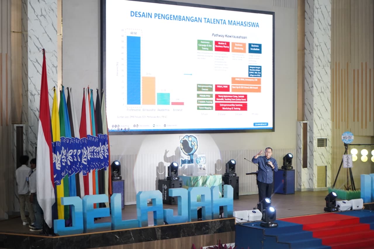 Rektor IPB University Prof. Arif Satria menghadiri acara Jelajah IPB, yang digelar Direktorat Kerjasama, Komunikasi, dan Pemasaran (DKKP) IPB di Grha Widya Wisuda, Sabtu (4/10/2025). Dalam acara yang menghadirkan pelajar se-Indonesia ini, Prof. Arif menyampaikan materi tentang tantangan generasi muda di era disrupsi, digitalisasi, dan keberlanjutan.