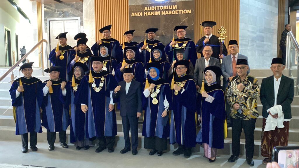 Dalam Orasi Ilmiah hari ini, turut hadir Wakil Presiden RI 2019-2024 K.H. Ma’ruf Amin bersama istri, serta Kepala Badan Penyelenggara Haji M. Irfan Yusuf Hasyim.